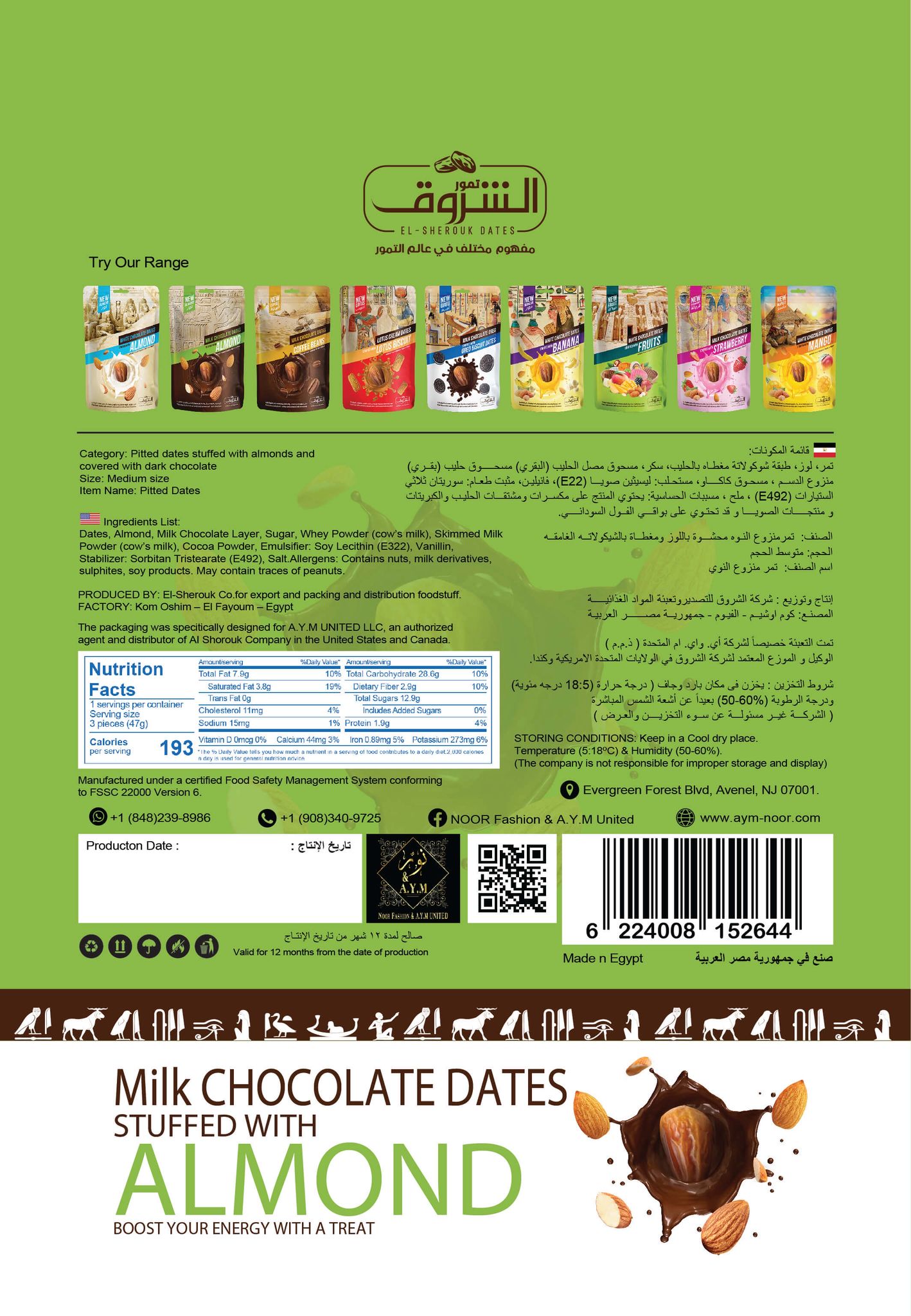 Dates With Almond Milk Chocolate, Net Weight: 250g | 12 Pieces Per Box